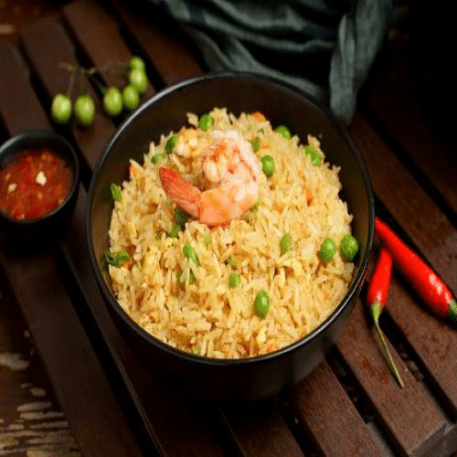 Poulet, bambou, haricots verts, lait de coco, basilic, poivrons verts et rouges. Servi avec un bowl de riz.